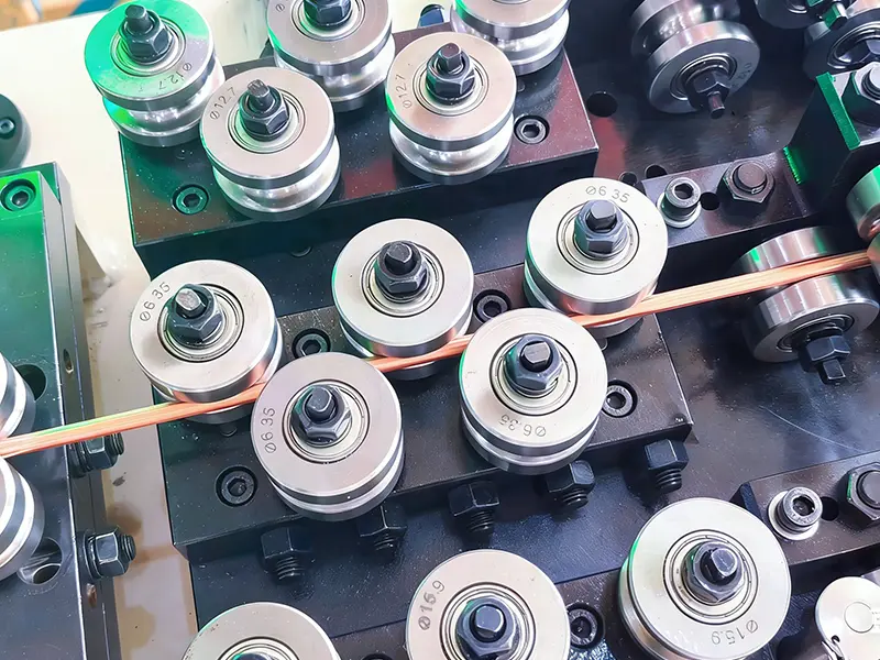 GRM ראָולינג מיל פאַבריק אָפפערס הויך-פּינטלעכקייַט ילעקטראָומאַגנעטיק דראָט ראָולינג מיל, דיזיינד פֿאַר פּינטלעכקייַט פאָרמינג פון רעקטאַנגגיאַלער מאַגנעט ווירעס. די עקוויפּמענט ניצט יקסטרוזשאַן אָדער קאַלט ראָולינג פּראַסעסאַז, און ינשורז אַז די דראָט האט גענוי ווינקל שאַפּעס דורך קייפל ראָולינג פּאַסיז, און קענען זיין ינסאַלייטיד מיט ינאַמאַל, פּאַפּיר אָדער פּאַליעסטער ייַנוויקלען. די ראָולינג מיל האט אַ הויך-סוף גרעב און ברייט קאָנטראָל סיסטעם צו ענשור ויסגעצייכנט שפּול געדיכטקייַט און ינסאַליישאַן קוואַליטעט, און איז וויידלי געניצט אין די פּראָדוצירן פון הויך-פאָרשטעלונג עלעקטריקאַל עקוויפּמענט אַזאַ ווי מאָטאָרס, טראַנספאָרמערס און ינווערטערס.